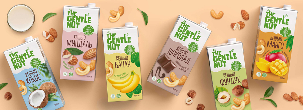 The Gentle Nut — уникальный продукт на рынке растительного молока. Это 100% растительный напиток на основе орехов кешью с различными вкусами. Отличная альтернатива обычному молоку, которая обладает легкой кремовой текстурой и тонким ореховым вкусом. Агентством UP BRANDS был сделан редизайн упаковки для линейки The Gentle Nut для российского рынка.