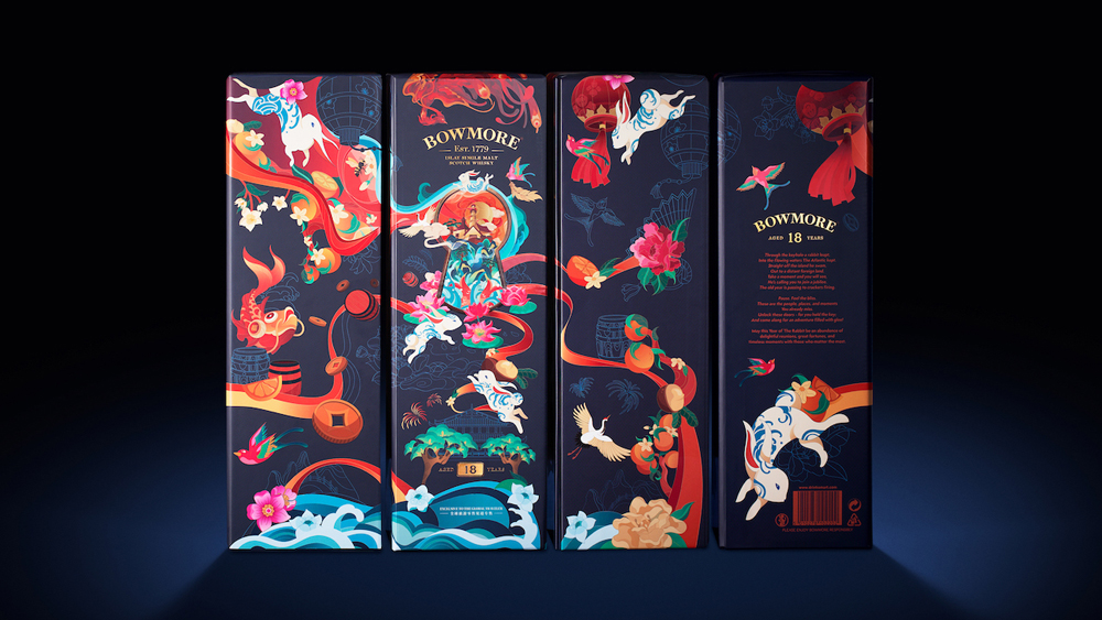 Агентство Leo Burnett Сингапур и компания Beam Suntory приглашают всех в это год кролика проследовать в захватывающий мир односолодового виски Bowmore. В новом лимитированном выпуске дизайнеры смешали традиционные китайские элементы и детали, связанные с историей винокурни.