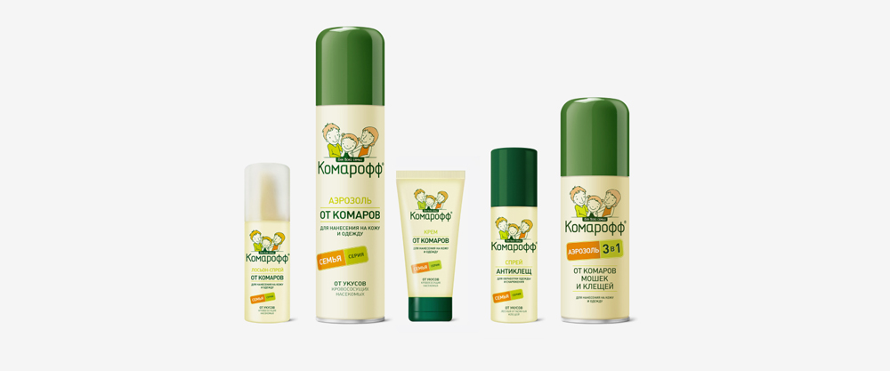 Команда Otvetdesign провела редизайн упаковки и логотипа средств от насекомых бренда "Комарофф". Это бренд из сегмента недорогих защитных средств от укусов, знакомый многим. Но за время существования марки дизайн упаковки успел устареть, а образ средства "для всей семьи" перестал отражать свойства всех продуктов линейки.