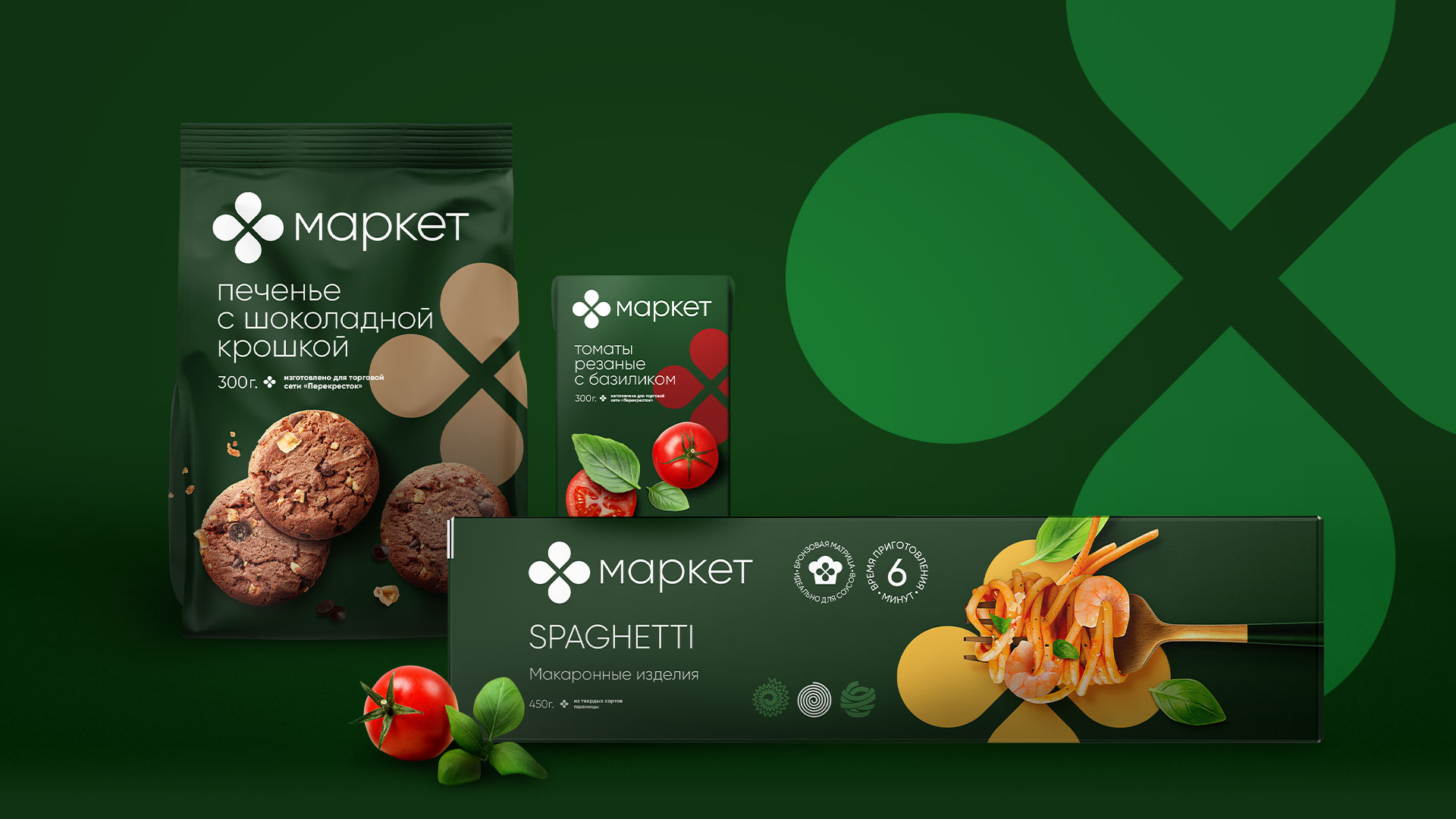 Для ребрендинга ключевого СТМ в среднем ценовом сегменте - «Маркет» - была выбрана платформа «Современный городской бренд». Такое решение позволяет подчеркнуть высокое качество ассортимента торговой марки и помогает сделать выбор повседневных товаров простым и удобным. Цвета и шрифт на упаковках продукции перекликаются с визуальным стилем «Перекрёстка», так как именно «Маркет» является олицетворением самой сети. В новом концепте важная роль отводится фудзоне: она подчеркивает вкусовые качества товаров и визуально помогает покупателям с выбором.