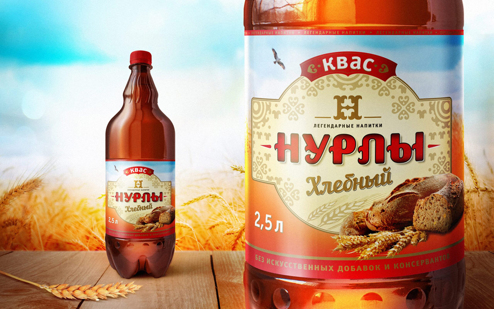 Брендинговое агентство Muhina Branding&Design и завод безалкогольных напитков "Нурлы" (Уфа) представили дизайн бутылки кваса "Нурлы. Хлебный".