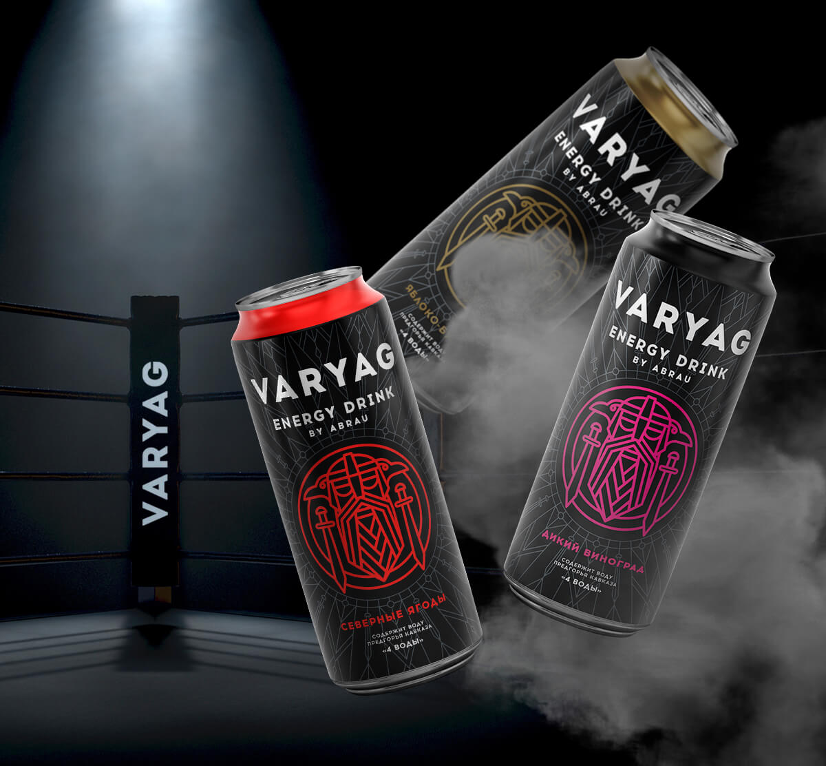 Линейка энергетических напитков VARYAG BY ABRAU выпускается в алюминиевой банке объемом 0,45 л. Узнать новинку можно по глянцевой черной упаковке, брутальному логотипу VARYAG FIGHT GYM и сплошному узору, навеянному скандинавскими рунами.