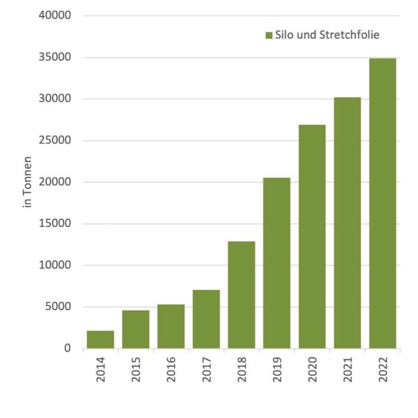 Согласно информации немецкой ассоциации производителей пластиковой упаковки IK Kunststoffverpackungen, организованная ей инициатива ERDE (Erntekunststoffe Recycling Deutschland – Рециклинг пластика для урожая) снова смогла значительно увеличить объемы сбора в 2022 г. В 645 пунктах приема и благодаря 3147 сборам на фермах было собрано и переработано в общей сложности 34 889 т силосной и стретч-плёнки. Это соответствует 68,7% от всей силосной и стретч-плёнки, поставляемых на немецкий рынок. Это подтверждается в годовом отчете Федерального министерства окружающей среды, охраны природы, ядерной безопасности и защиты прав потребителей Германии (BMUV) за этот год на основе расчетов GVM Gesellschaft für Verpackungsmarktforschung (2023).