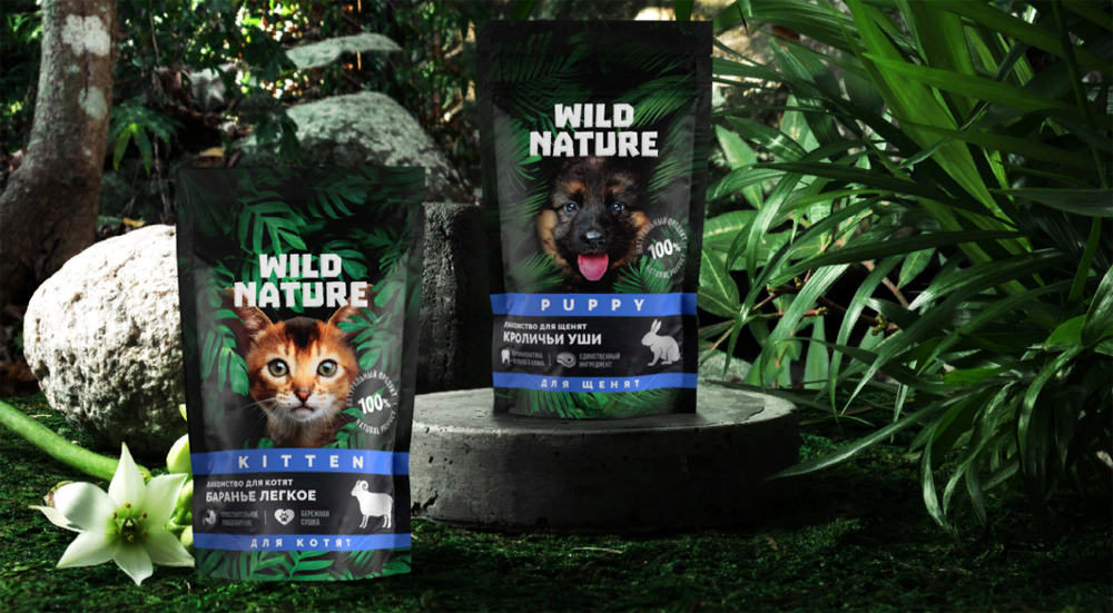 Простой и легко запоминающийся нейм Wild Nature имеет сразу несколько смыслов. В значении «живая природа» он говорит о натуральности и пользе товаров. В значении «дикая натура» – о природных инстинктах питомцев.