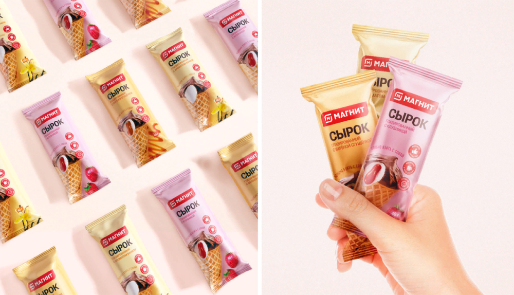 Основой текущего дизайна упаковки являлась буква «М», символизирующая материнский бренд «Магнит». При разработке нового проекта специалисты DDC.Group посмотрели на бренд под другим углом – буквально как смотрит на него потребитель, сверху вниз. Так фудзона в стиле «top view» стала основой фотостиля обновленного бренда.