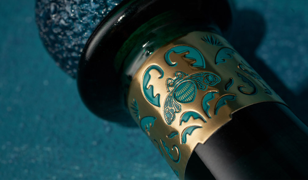 Дизайнеры начали с изготовления на заказ синей бутылки, напоминающей лист агавы. Бутылка увенчана уникальной текстурированной пробкой, которая ассоциируется с вулканической почвой высокогорья Халиско. Логотип Patrón выполнен золотым тиснением, на горлышко нанесена металлическая пластина золотисто-бирюзового цвета.
