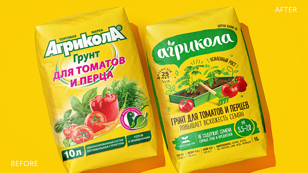 Агентство DDVB представляет новый дизайн упаковки для бренда удобрений и грунтов "Агрикола". Бренд давно не обновлял свой фирменный стиль, а главное преимущество на полке — цвет — стало заимствоваться конкурентами. Клиенту нужно было смысловое и визуальное обновление бренда.