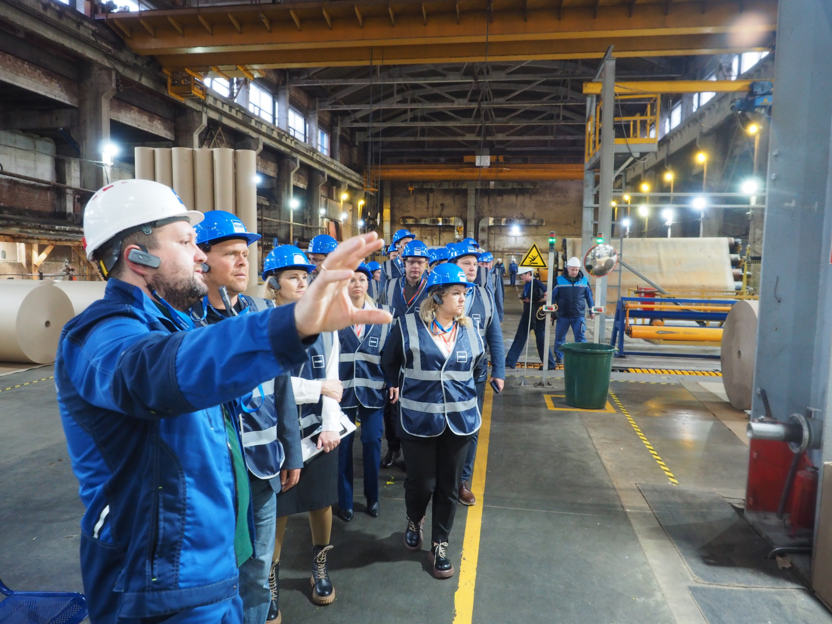 ПЦБК – один из крупнейших переработчиков макулатуры в России с мощностью 300 тыс. тонн вторсырья в год. Гостям показали, как проходит процесс размола макулатуры, очищения избыточной оборотной воды на флотационной установке. В операторской КДМ-3 продемонстрировали автоматизированную систему управления, она позволяет контролировать все стадии производства: от размола макулатурной массы до сдачи готовой продукции на склад.
