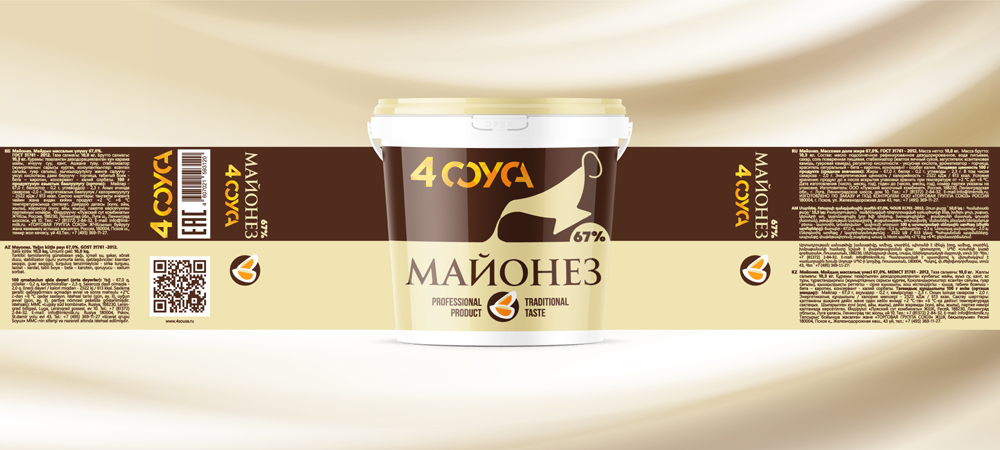 Любимейшая всеми флексопечать иногда заставляет опустить руки и свыкнуться с реальностью. Но только не в этом проекте. Разработанная концепция дизайна упаковки настолько проста и идейно интересна, что флексопечать пришлась ей к лицу. Яркие плашечные цвета и несколько точечных акцентов привлекают внимание и действуют как единый маркер. Иллюстрация большого соусника сразу обозначает категорию продукта, а ингредиенты-иконки выгодно выделяют фуд-зону и выделяют продукт у любом уголке профессиональной кухни. Фуд-зона у каждого соуса раскрывает его кулинарное предназначение. Общий дизайн товарного знака и упаковки передает дух индивидуального творческого подхода, формируя желание создавать неповторимые кулинарные шедевры.