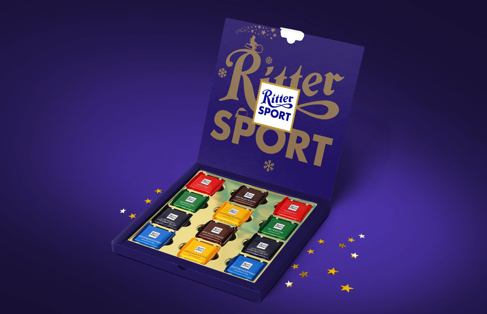 Ritter Sport обратился в агентство Getbrand с целью разработать новогодний дизайн упаковки шоколадок. Лимитированные коллекции всегда пользуются популярностью среди потребителей, поскольку добавляют особой торжественности к соответствующему поводу.