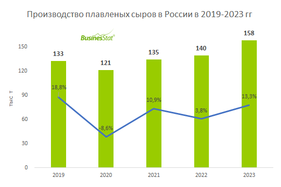 По данным , подготовленного BusinesStat в 2024 г, их выпуск в стране в 2019-2023 гг увеличился на 19%: со 133 до 158 тыс т.