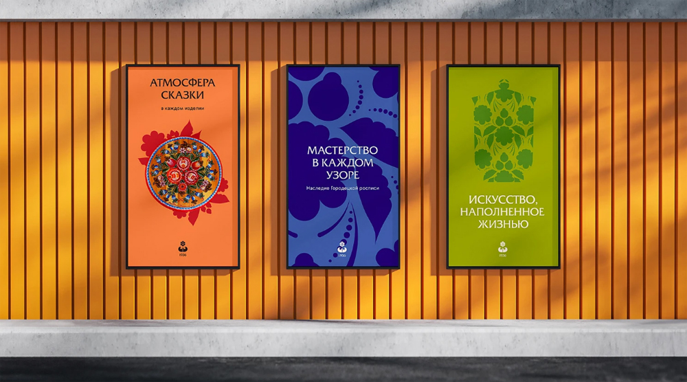 Айдентика получилась очень аутентичной, но при этом современной. Важно было важно акцентировать внимание на уникальных особенностях городецкой росписи, чтобы создать максимально узнаваемый образ.