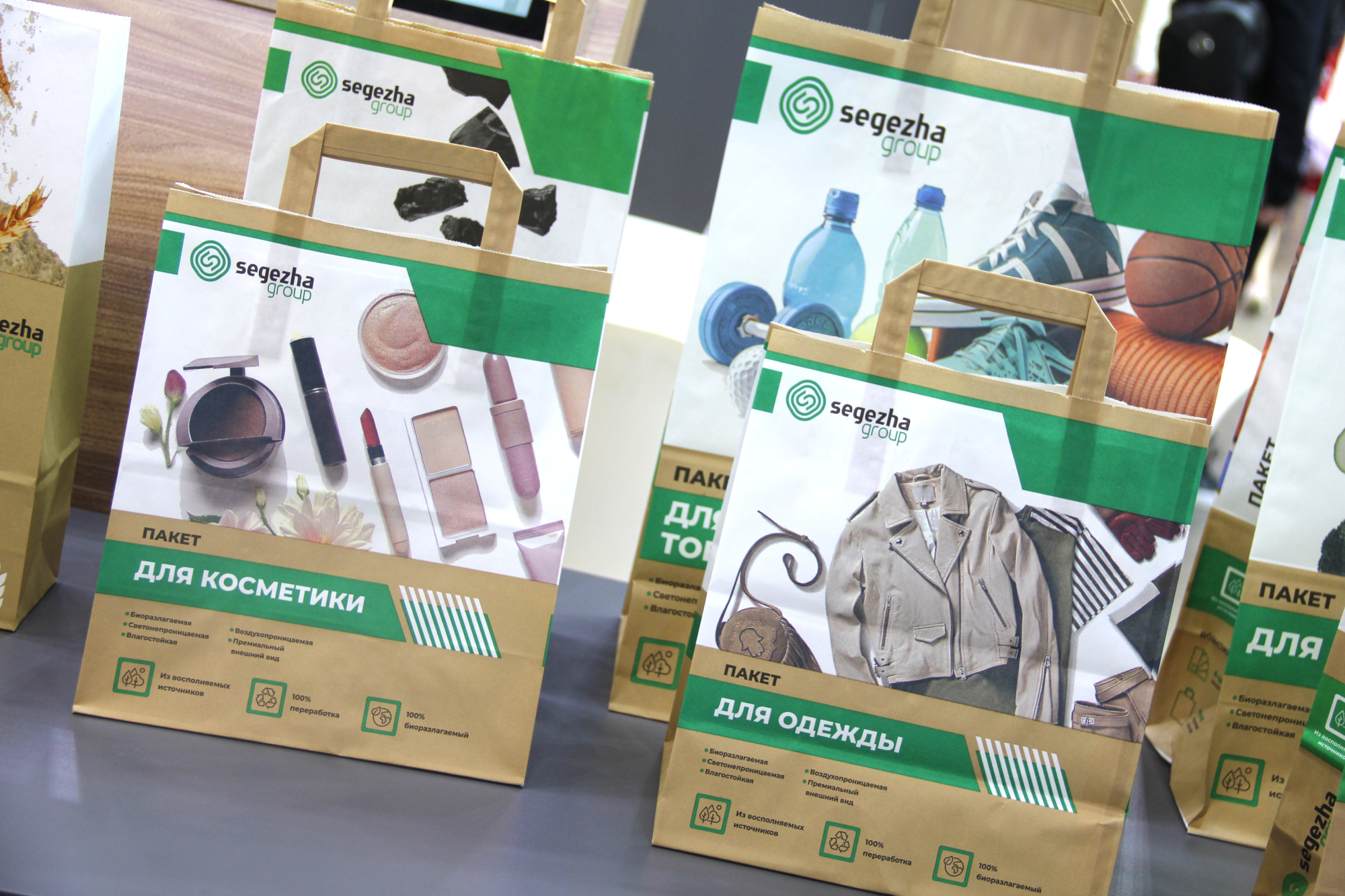 На стенде компании представлена упаковка, которая широко используется для: фасовки сухих строительных смесей цемента. химических продуктов, удобрений, зоотоваров, древесного угля и продуктов питания. Упаковочные решения Segezha Group также востребованы на рынке ретейла, электронной торговли и доставки. Нанесение на упаковку цветных текстов и изображений, до восьми цветов, позволяет эффективно реализовывать креативные идеи дизайнеров и специалистов ситуативного маркетинга.