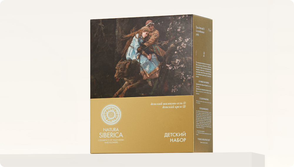 Специально к открытию «Васнецовых» Natura Siberica создала лимитированную коллекцию косметических наборов с изображениями всеми любимых картин: «Богатыри» (набор для ухода за руками), «Гамаюн» (крем для рук), «Иван-царевич на Сером Волке» (детский набор).