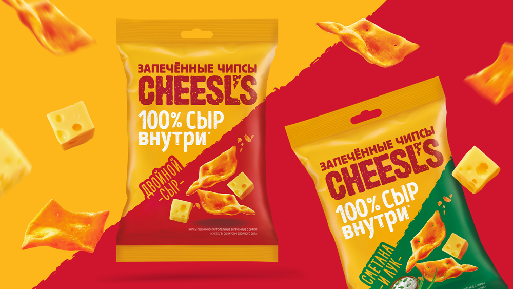 Чипсы Cheesl’s обладают нетипичным форматом: вместо привычных рынку картофеля или кукурузы – пшенично-картофельная основа; способ приготовления – запекание вместо вредной обжарки, а также стопроцентный натуральный сыр в составе; динамичное настроение: фирменная цветовая контрастность подстегивает испытать яркие эмоции и удовольствие.