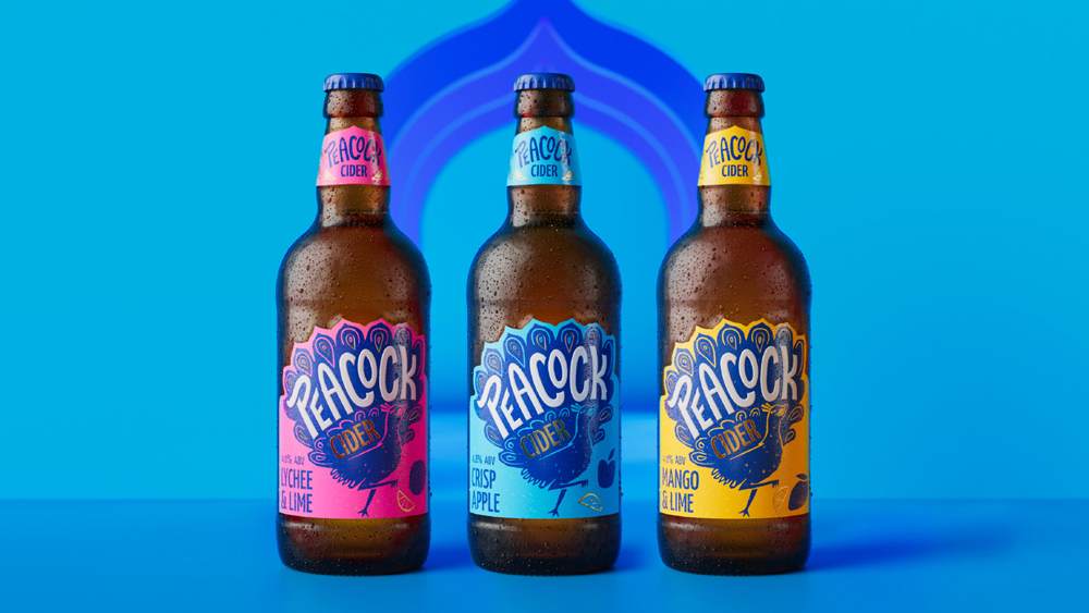 Peacock (пер: павлин) – это ароматизированные сидры с паназиатскими вкусами. Исследование показало, что бренд не обладал той веселой индивидуальностью, которую ожидают потенциальные потребители. Поэтому дизайнеры решили сделать бренд более «павлиньим». Птицу отрисовали вручную. Павлин играет ведущую роль, он приглашает вас открыть для себя что-то новое.