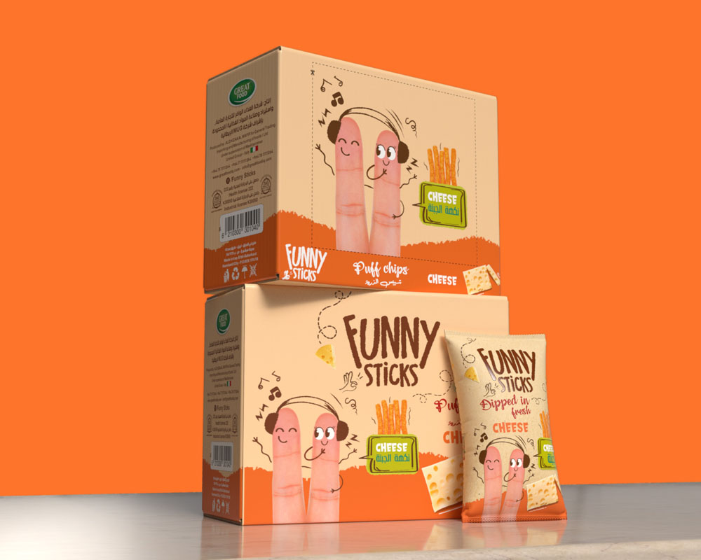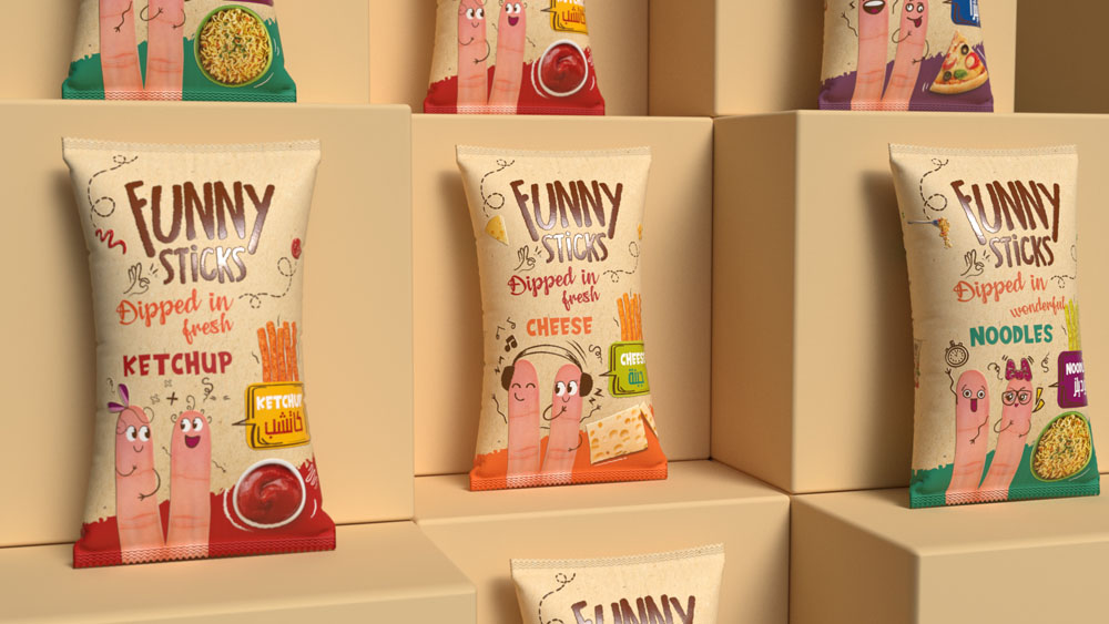 Агентство Dot Advertising & Marketing (Дубай) представляет дизайн упаковки кукурузных палочек Funny Sticks. Бренд разработан специально для детей. Для них кукурузные палочки – это не только сладость, но и забавное взаимодействие с продуктом.