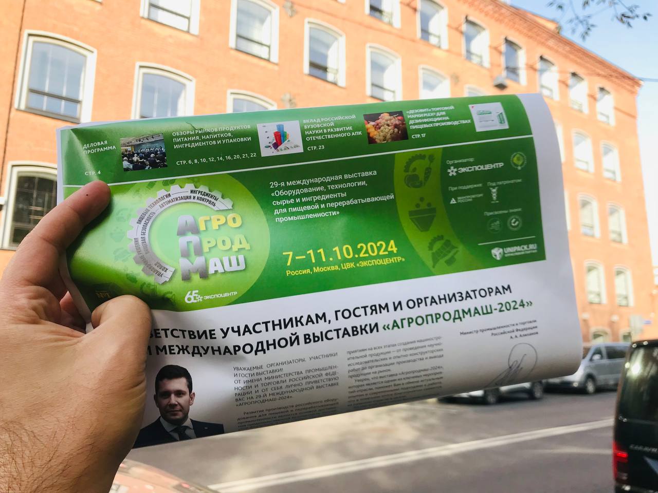 Официальный выпуск газеты открывает приветствие министра промышленности и торговли Российской Федерации А.А. Алиханова в адрес участников и гостей выставки. Это свидетельствует о высоком статусе выставки «Агропродмаш». «ЭКСПОЦЕНТР» организует выставку при поддержке Министерства промышленности и торговли Российской Федерации под патронатом Торгово-промышленной палаты Российской Федерации.