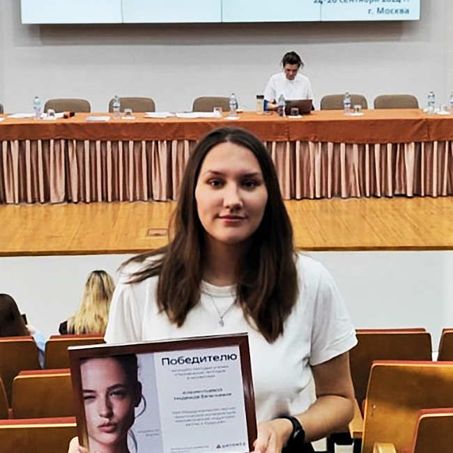 Специалист сектора разработки косметических средств научного центра АО «Свобода» Надежда Клементьева представила статью «Обзор пептидов, применяемых в косметической промышленности» и стала победителем.