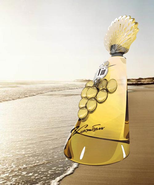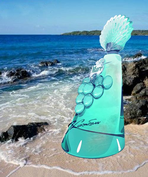 Особое внимание было уделено дизайну флаконов, который выполнен в стиле модерн начала ХХ века. Форма неправильного конуса придает флаконам некую загадочность, словно рука человека не вмешивалась в творение самой природы. Они как будто попали в море и под действием морской воды изменили свою форму, сохранив содержимое в первозданном виде.