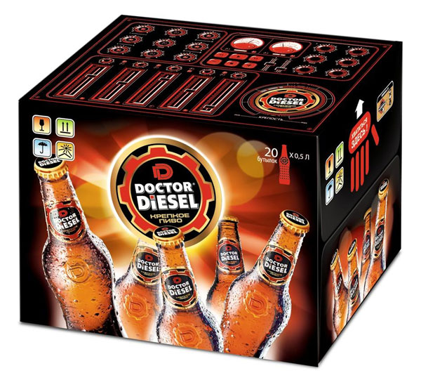 Ультра современный дизайн бутылки с уникальным рельефом выполнен специально для марки Doctor Diesel. Пиво будет выпускаться с новым дизайном этикетки на прозрачной пленке и с отвинчивающейся крышкой twist-off. Напиток позиционируется в сегменте класса премиум. В поддержку запуска марки стартует широкая рекламная кампания в различных средствах массовой информации.