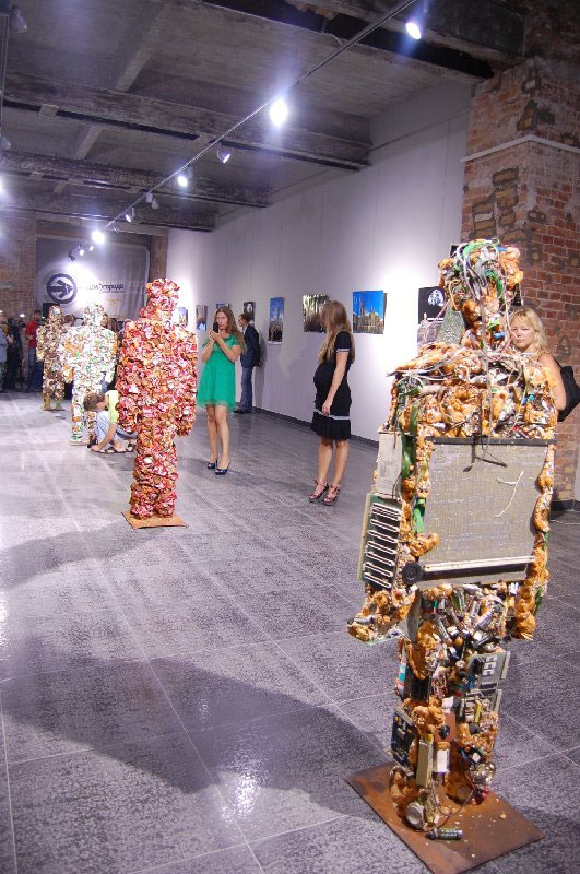 Не сегодняшний день, в арт-центре Александра Коробчинского, представлены лишь несколько скульптур из мусора.
