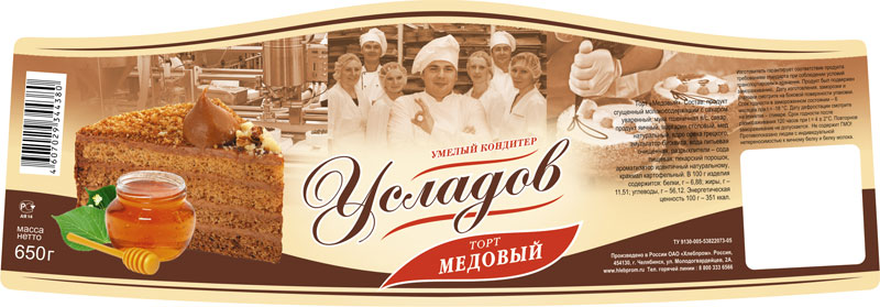 Новая этикетка и дно тортов «Усладов» выполнены в шоколадных тонах, располагающих к неторопливому чаепитию в уютной обстановке. Команда кондитеров, изображенная на упаковке, символизирует профессионализм и искусство в приготовлении кондитерской продукции. А благодаря теплому шоколадно-молочному цвету упаковки продукты «Усладов» выглядят еще более аппетитными.
