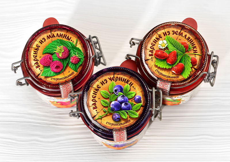 В рамках проекта создан дизайн этикеток для продуктовой линейки варенья из земляники, из малины и из черники.