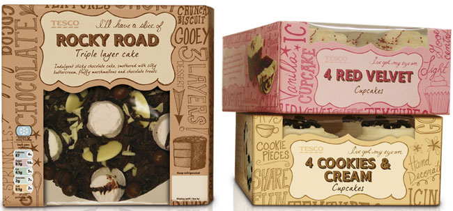 Дизайн подчеркивает использование качественных ингредиентов, ручное декорирование и индивидуальность продукта через изображение его ингредиентов. Упаковка обращается к потребителю в дружеском ключе: «Мне приглянулось…» или «Я попробую кусочек… Эта линейка, состоящая из 14 разновидностей пирожных, включая Red Velvet Cupcakes, Chocolate Whoopie Pies, Chunky Monkey Loaf Cake и Toffee Popcorn Triple Layer Cakes, действительно выделяется на полке и значительно отличается от стандартных продуктовых линеек Tesco.