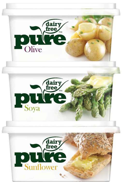 По заказу британской компании Kerry Foods, специалистами студии Family and Friends был разработан новый дизайн упаковки для бренда Pure. Это продукт класса премиум, который является безмолочной альтернативой сливочному маслу.