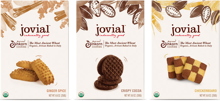 Jovial Cookies запустил линию продуктов на основе айнкорна из 3-х видов (Checkerboard, Crispy Cocoa и Ginger Spice) и 3 вида продуктов без клетчатки (Choc Cream Filled, Vanilla Cream Filled и Fig Fruit Filled) в магазинах натуральной и здоровой еды в марте 2011 года.