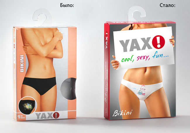 Необходимо было выделить торговую марку на полке и представить продукт в новой яркой, красочной упаковке, отражающей модное настроение белья ТМ "YAX!"