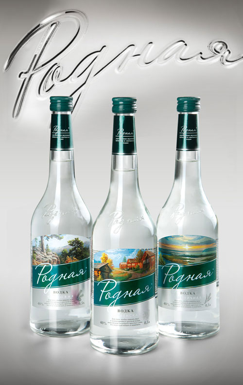 При создании образа водки «Родная» важно было донести до потребителя основные ценности нового продукта: радость от общения с родными и старыми друзьями, душевность, свой уголок, где тепло и уютно, где согревается душа. Новый дизайн передает лирическое настроение и философию бренда. «Родное» – это то, что внутри нас, нечто постоянное и надежное - родители, дом, друзья, речка или улица детства, школа или студенчество. Эти понятия вне времени. У каждого свое собственное «родное» - близкое и теплое.