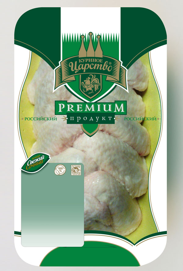 Для того, чтобы иметь возможность выкладки на полках с ограниченным пространством (на рынках, небольших региональных розничных точках), для марки «Куриное царство» был разработан вертикальный дизайн упаковки для охлажденной продукции. Такое позиционирование товара не только удобно, но и делает продукцию более заметной на полках магазинов небольшого формата. Новая конфигурация лотка не позволит продукту выходить за пределы упаковки, кроме этого будет использована более плотная и прочная пленка, которая поможет сохранить продукт свежим и привлекательным.