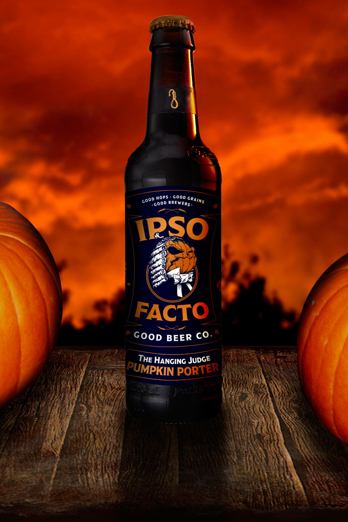 Отличительным знаком бренда Ipso Facto является изображение судьи. Пиво The Hanging Judge Pumpkin Porter не стало исключением. В центре этикетки – «тыквенный судья, выносящий смертельный приговор». На контрэтикетке – петля для повешения.