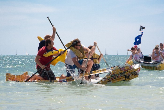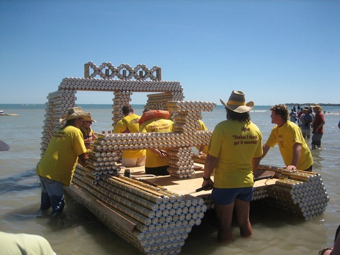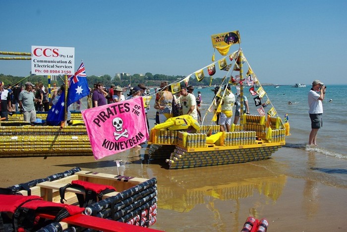 В городе Дарвин, который расположен на северном побережье Австралии, прошло необычное состязание - Darwin Beer Can Regatta. Это мероприятие проводится каждый год начиная с 1974 года. Участники готовят лодки из упаковочных отходов: пивных банок, пластиковых бутылок и молочных пакетов.