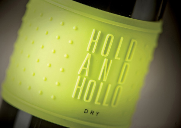 Венгерским дизайнером Орси Юхасом (Örsi Juhász) придумана оригинальная этикетка для винного бренда Hold and Hollo. Этикетка сделана из силикона. Она лучше привлекает внимание, и дает тактильные ощущения.