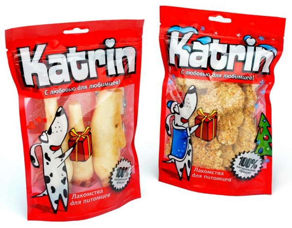По заказу компании «Мир Животных», московским агентством «Omnibus» был обновлен дизайн упаковки лакомств для собак «Katrin», ранее разработанный в агентстве. Новая упаковка стала более современной, технологичной и немного поменяла размер.