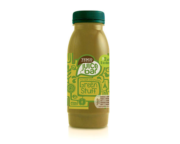 Британская сеть супермаркетов Tesco представила новую собственную торговую марку Juice Bar. Это смесь смузи с соком. Перед специалистами агентства Parker Williams (Великобритания) стояла задача разработать дизайн упаковки, с одной стороны, четко объединяющий все позиции в линейку, с другой стороны, выделяющий каждую позицию.