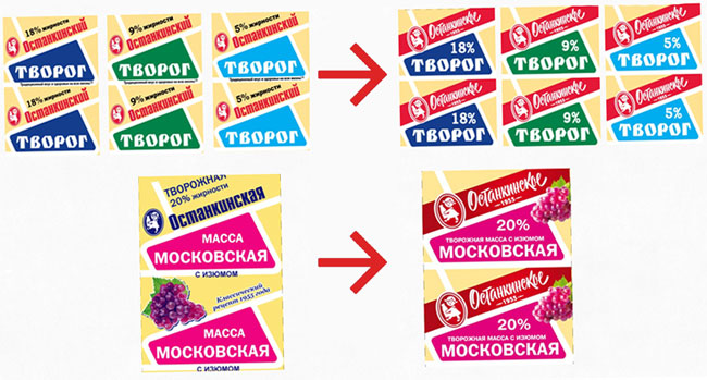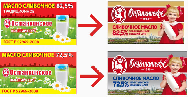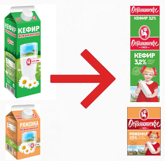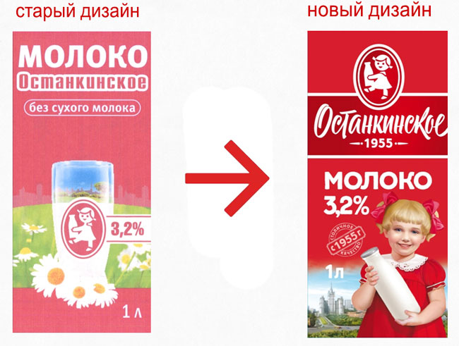 «Останкинский молочный комбинат» решил прибегнуть к стилистике советского времени в оформлении своей марки «Останкинское». Теперь на упаковке изображена «советская» девочка с бутылкой молока. Таким образом, производитель хотел подчеркнуть, что продукция следует стандартам качества с середины прошлого столетия.