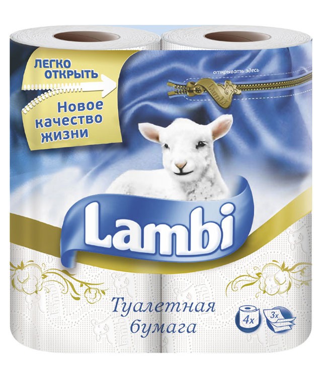 По признанию дизайнеров «Lambi», новая упаковка была разработана по просьбам потребителей, которые хотели, чтобы пакет с туалетной бумагой или бумажными полотенцами «Lambi» открывался легко и удобно. Кроме того, продукцией «Lambi» теперь комфортно не только пользоваться, но и хранить. Благодаря механизму, созданному по принципу молнии, упаковка аккуратно открывается сверху, и все рулоны остаются на месте до того момента, пока они не понадобятся.