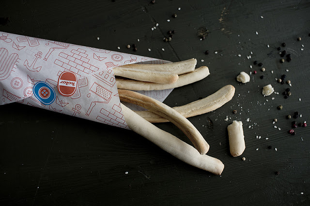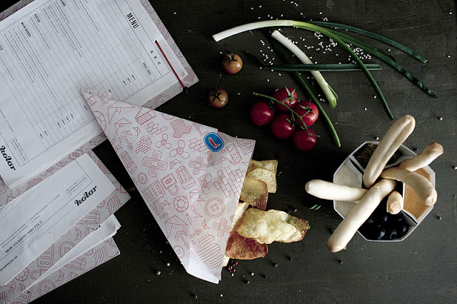 Дизайн молодого бренда Kolor разработан Эстер Лаки (Венгрия). В качестве пищевой упаковки для свежих лепешек пьядина и домашних чипсов используется оберточная бумага, скрепленная вездесущей банановой этикеткой. Для хлебных палочек гриссини разработана специальная упаковка с четырьмя кармашками для соусов.