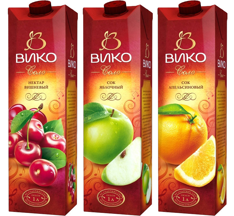 Первой представлена линия «ВИКО Соло», включающая 14 вкусов, в упаковке объемом 1 и 0,2 л. Название отражает суть: большая часть соков и нектаров «ВИКО Соло» - моновкусы, то есть, продукты, приготовленные из фруктов одного вида. Как в музыке сольная партия позволяет максимально раскрыть красоту звучания отдельного инструмента, так и соки или нектары «Соло» максимально раскрывают яркий и гармоничный вкус фруктов, из которых они произведены.