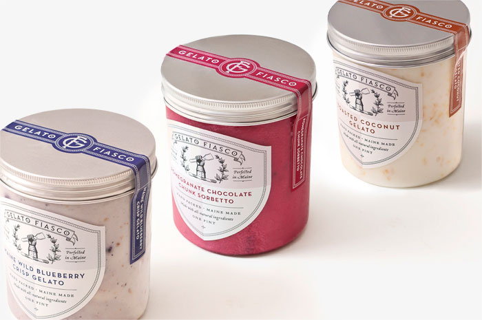 По заказу джелатерии Maine, в американской студии Louise Fili разработан новый дизайн упаковки для мороженого джелато Gelato Fiasco, которое производится из органического молока и только натуральных ингредиентов.