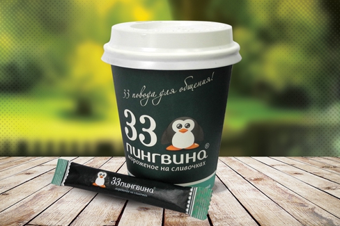 В компании "33 пингвина" заметили, что за редким исключением кофейные стаканы безлики и не несут никакой информации относительно места покупки. А между тем «кофе с собой» является очень популярной позицией, в том числе и на торговых точках производителя. В компании сделали вывод и выпустили новый стакан.