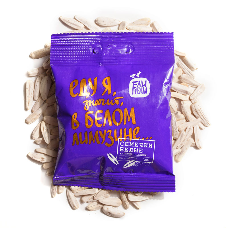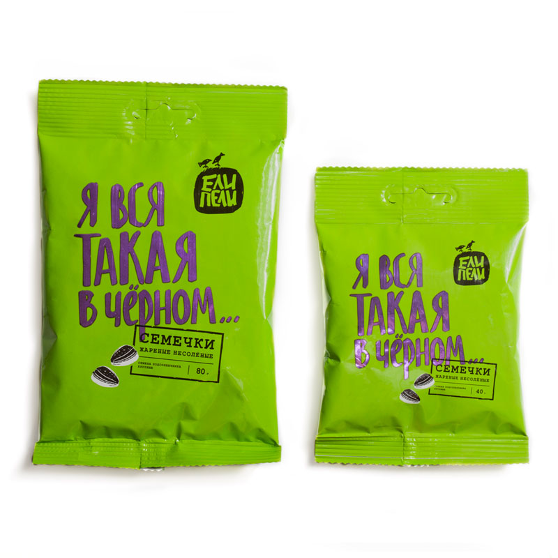 Студия брендига Ohmybrand (Москва) представила работу по созданию дизайна упаковки снеков "Ели-пели". В студии разработали название, дизайн упаковки и коммуникации для для торговой марки семечек и орехов эконом-класса, рассчитанную на молодую аудиторию.