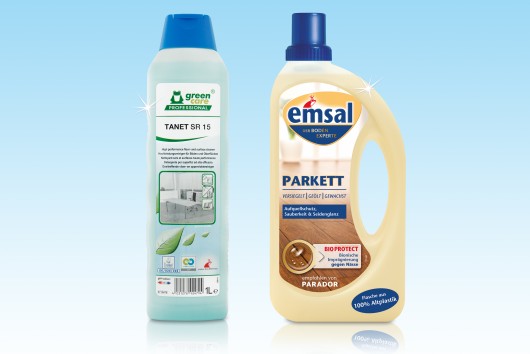 In a world-first at the Werner & Mertz GmbH factory in Mainz, emsal hardwood floor care and the green care PROFESSIONAL TANET SR 15 are being produced in bottles made of 100% PE recyclates from the Yellow Bag. Eventually all PE packaging for Werner & Mertz brands will be made in this quality from recycled plastic obtained from the collection system.