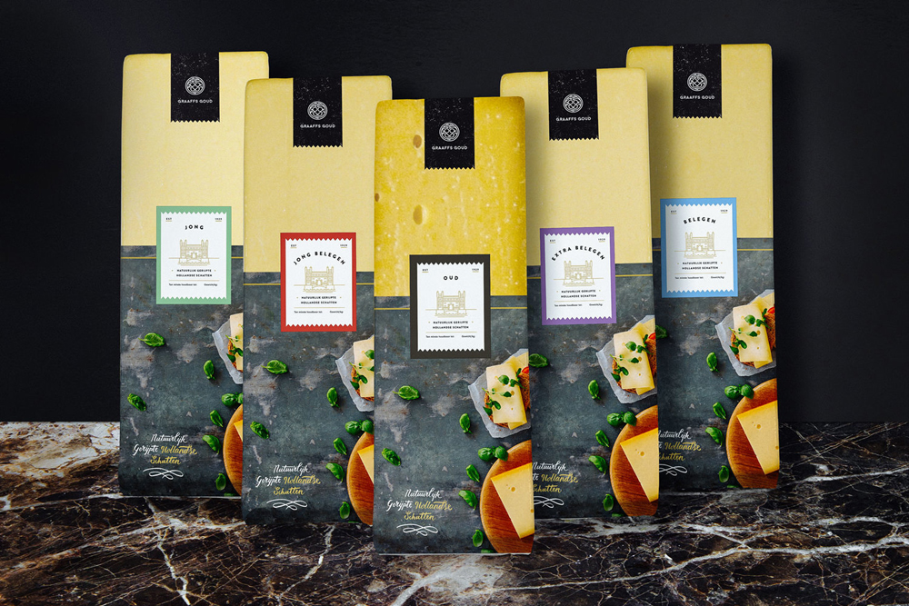 Для покупателя прозрачность упаковки является очень важным мотиватором к покупке. Мы хотим точно видеть то, что собирается купить. Это напрямую касается упаковки для сыра. Дизайнер Colin van den Broek помнил об этом, разрабатывая новый дизайн упаковки для сыров De Graaffs Goud.