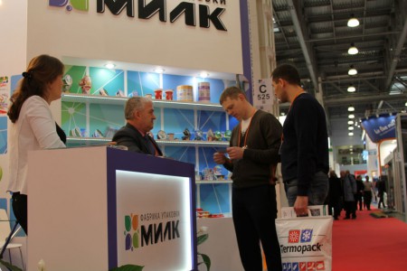 - Unembossed die-cut lid is becoming more and more popular every month, - this is how Sergey Kochetov, the Commercial Director, summed up his work with active and potential clients at the exhibition. – This packaging is mainly for premium dairy products. Our closest clients are big and medium domestic businesses – and so we were mostly concentrated on them. At last they had an opportunity to not only see the unembossed product in a magazine or read about it in the Internet, but touch and compare it with the previous generation die-cut lid – with embossing, and figure out the difference in their look and feel. Dairy manufactories from the CIS were also interested in the event though their business is only being developed – big retailers have only started to compete at the level of packaging. Their market is generally young, and many producers have only begun to take interest in vacuum packaging. When it comes to foreign clients, we have special events for them.