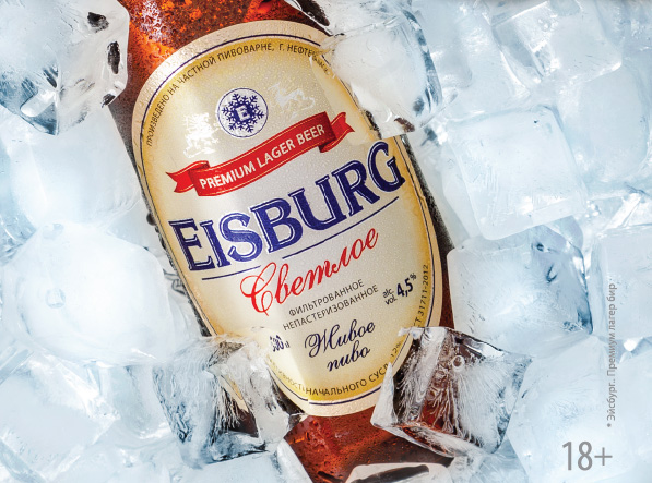 Cтудия Muhina Design разработала торговую марку, логотип и дизайн этикетки для пива Eisburg, которое выпускается Нефтекамской пивоварней.